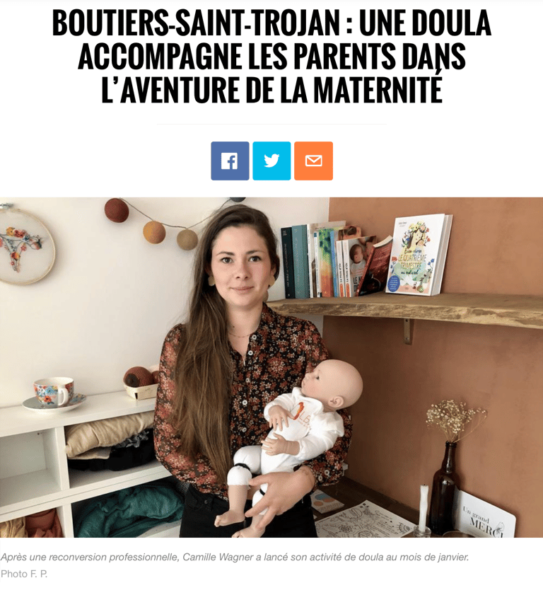 ”Je recommande Camille à 100%. Elle nous a accompagné en tant que doula tout au long de la grossesse, pour la naissance de notre enfant et le postnatal. Que ce soit dans son écoute, dans son accompagnement, dans ses soins...Camille est d'une sincérité, d'un soutien et d'une douceur exceptionnels. Tout ce qu'elle a mis en place lors de l'accompagnement m'a permis de me faire confiance et ce qui en a resulté est magique. Son aide tout au long de la grossesse et en postnatal est très précieuse. N'hésitez pas à faire appel à Camille quel que soit votre projet de naissance”